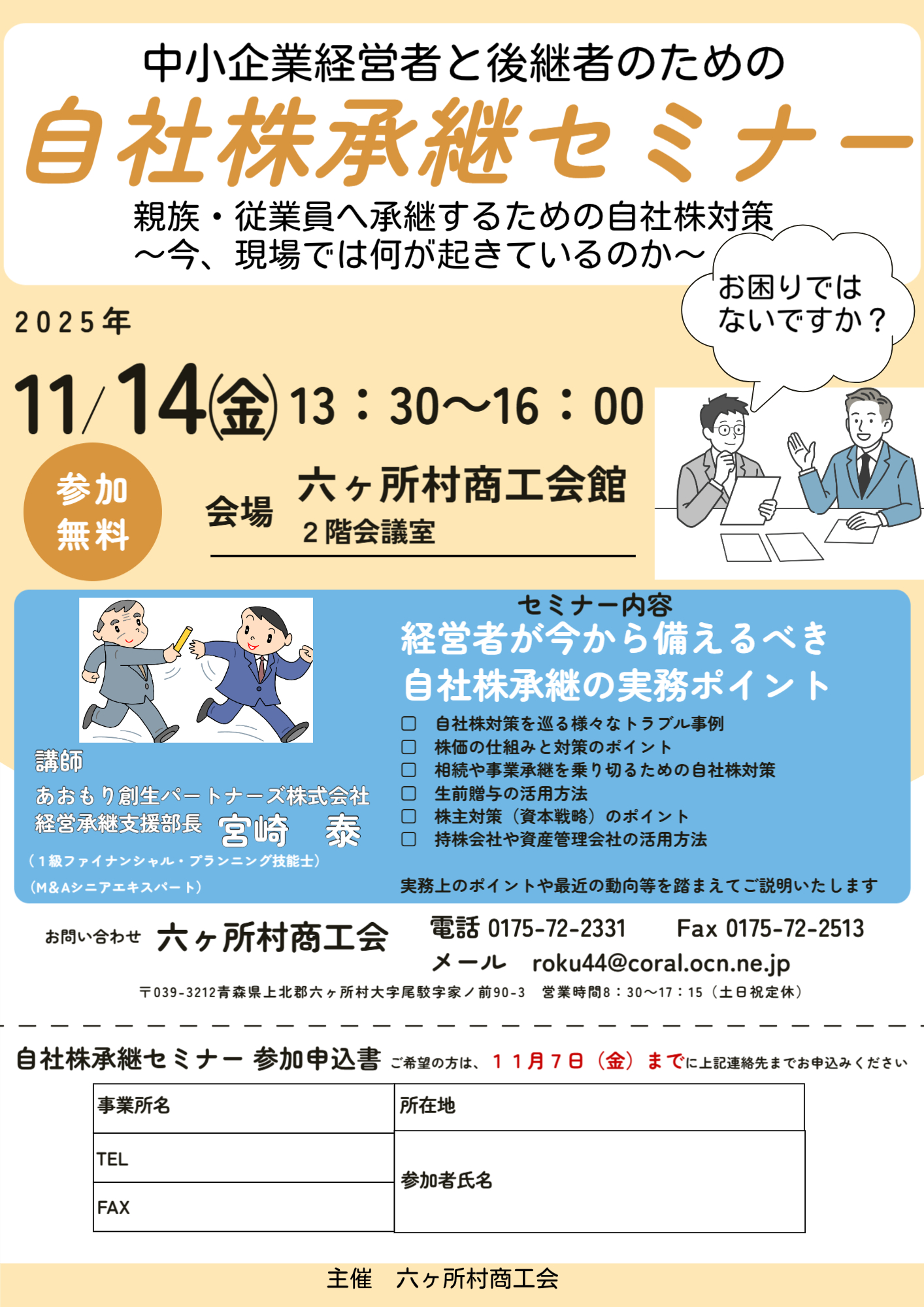 今回は、昨今複雑化している自社株の承継についての説明会を開催します。